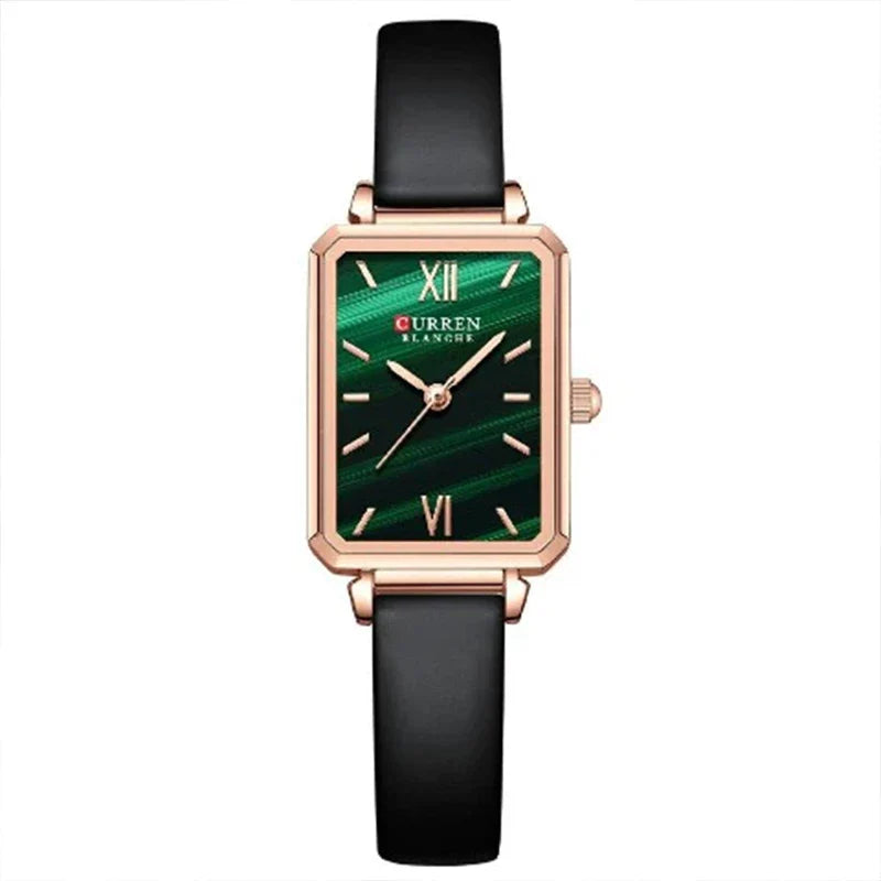 New curren women's square retro green watch, a splendid combination of style and humor. A touch of green gives both beauty and quality together in our new edition of blanche womens watches, this watch is light and perfect for a women with class. Soothing green color keeps your mind fresh and active, leather band with gold color outer dial is absolutely mind blowing. A head-turner timepeice demands a place in your watch-box. Grab this premium peice at low price for limited time backed with curren's one year warranty.