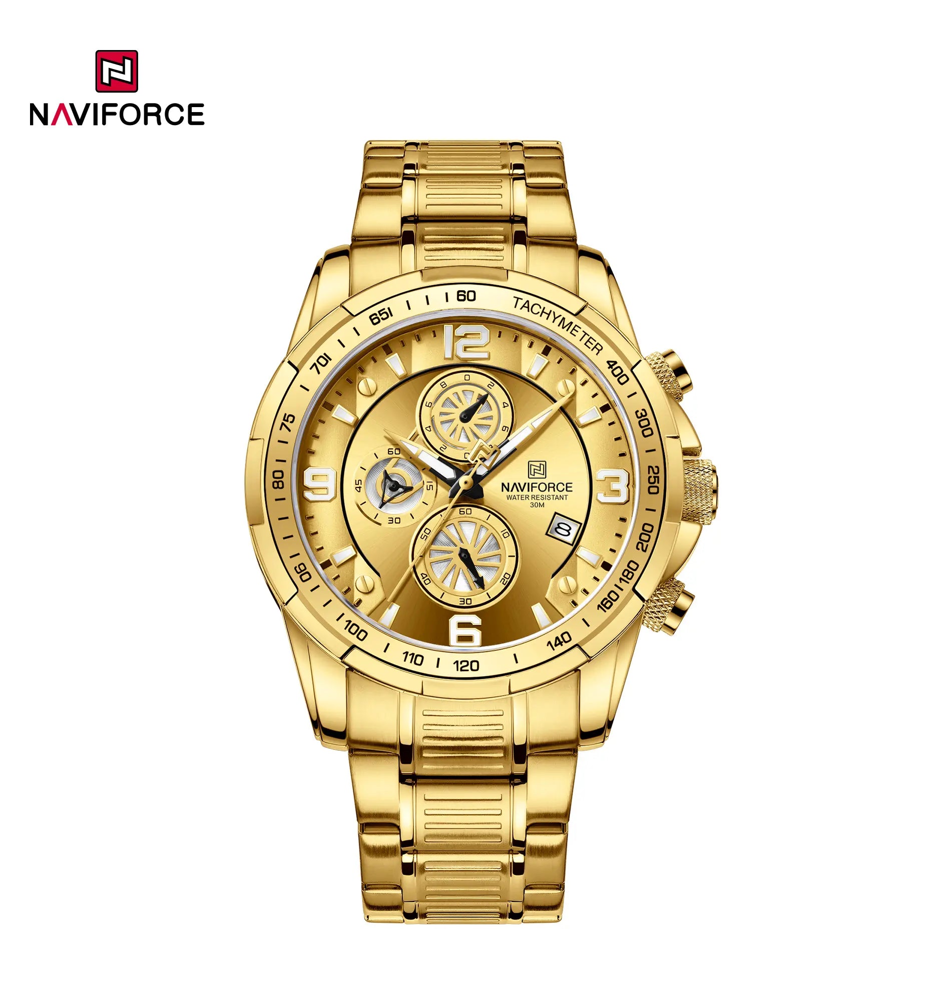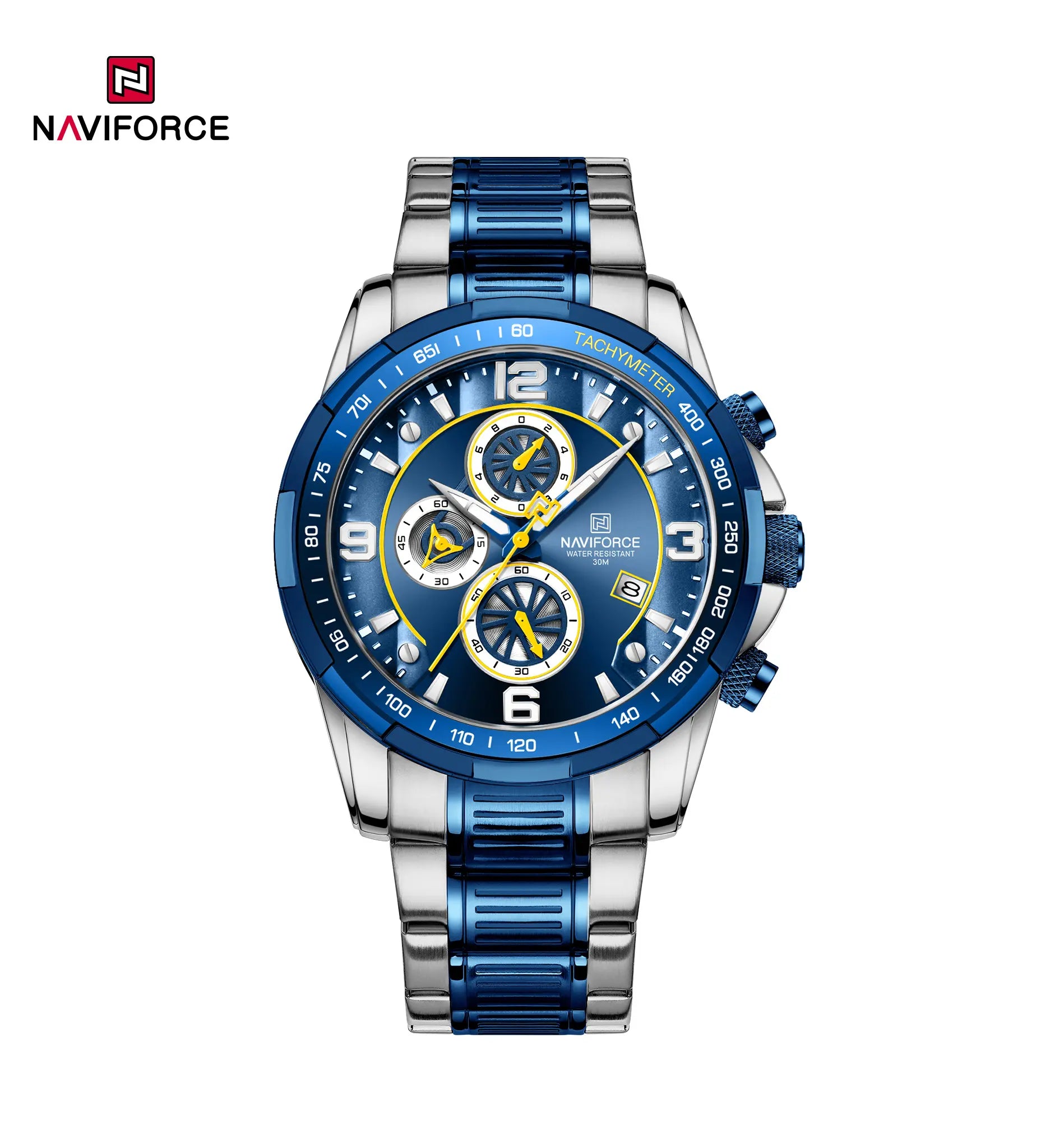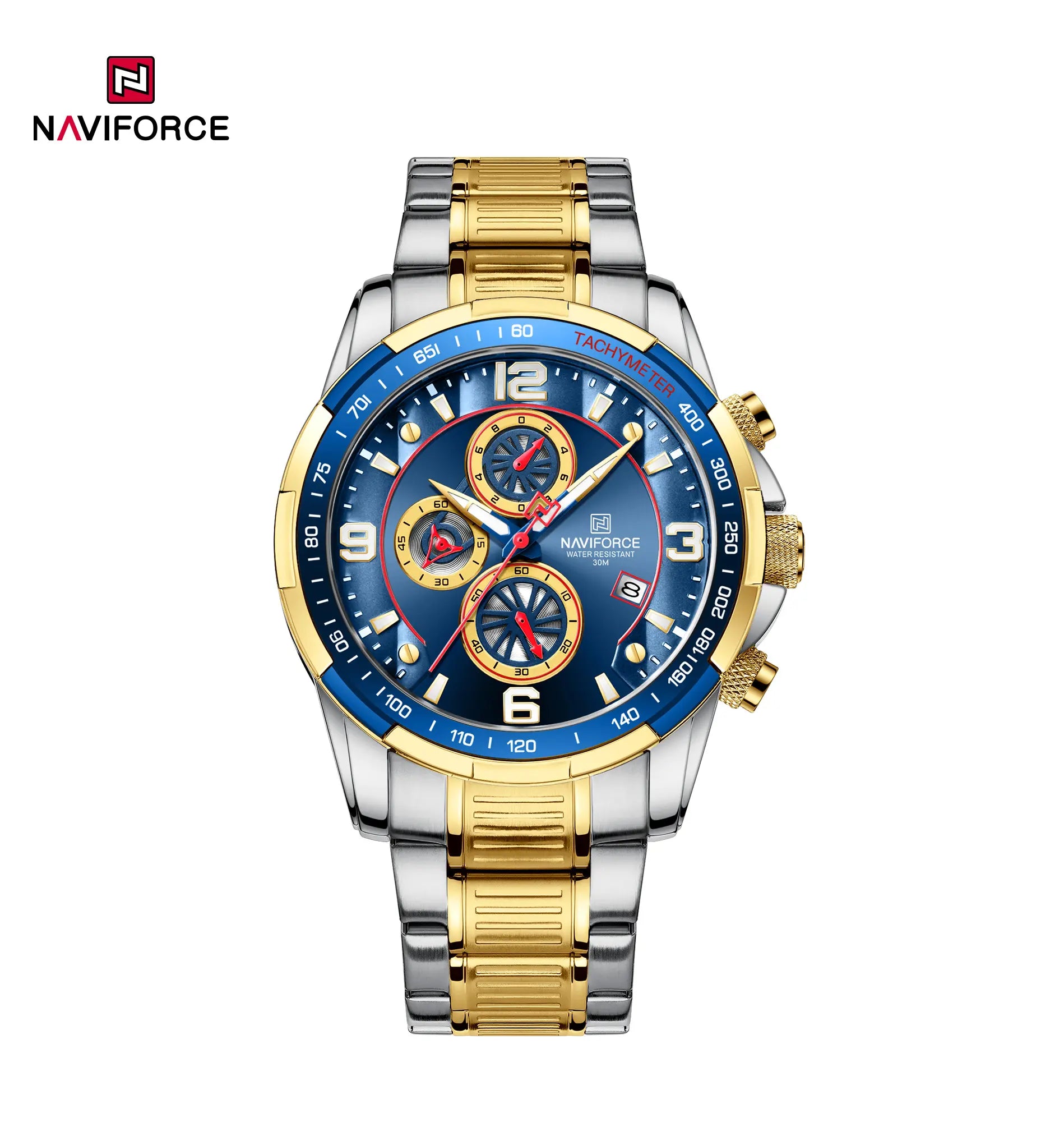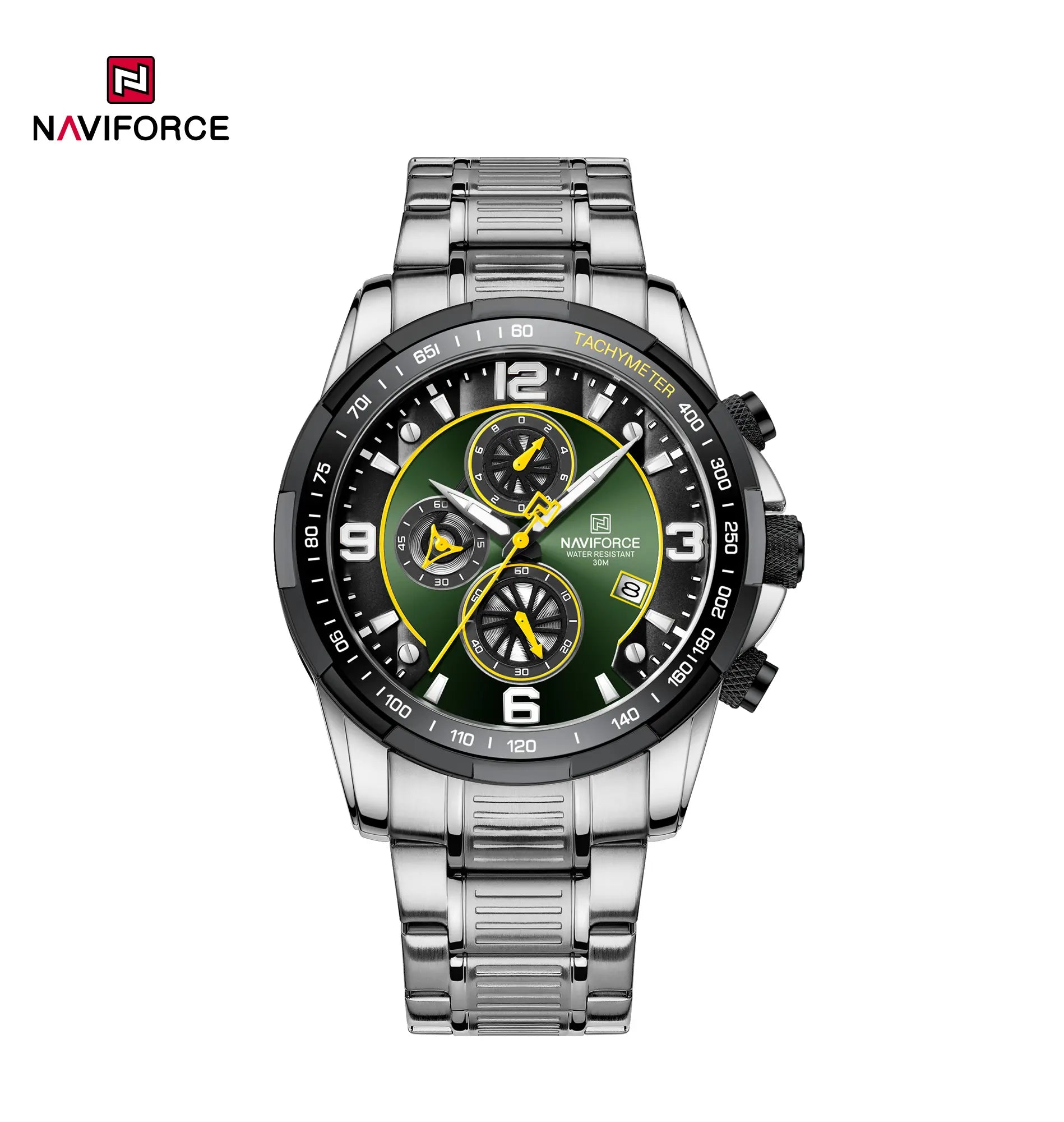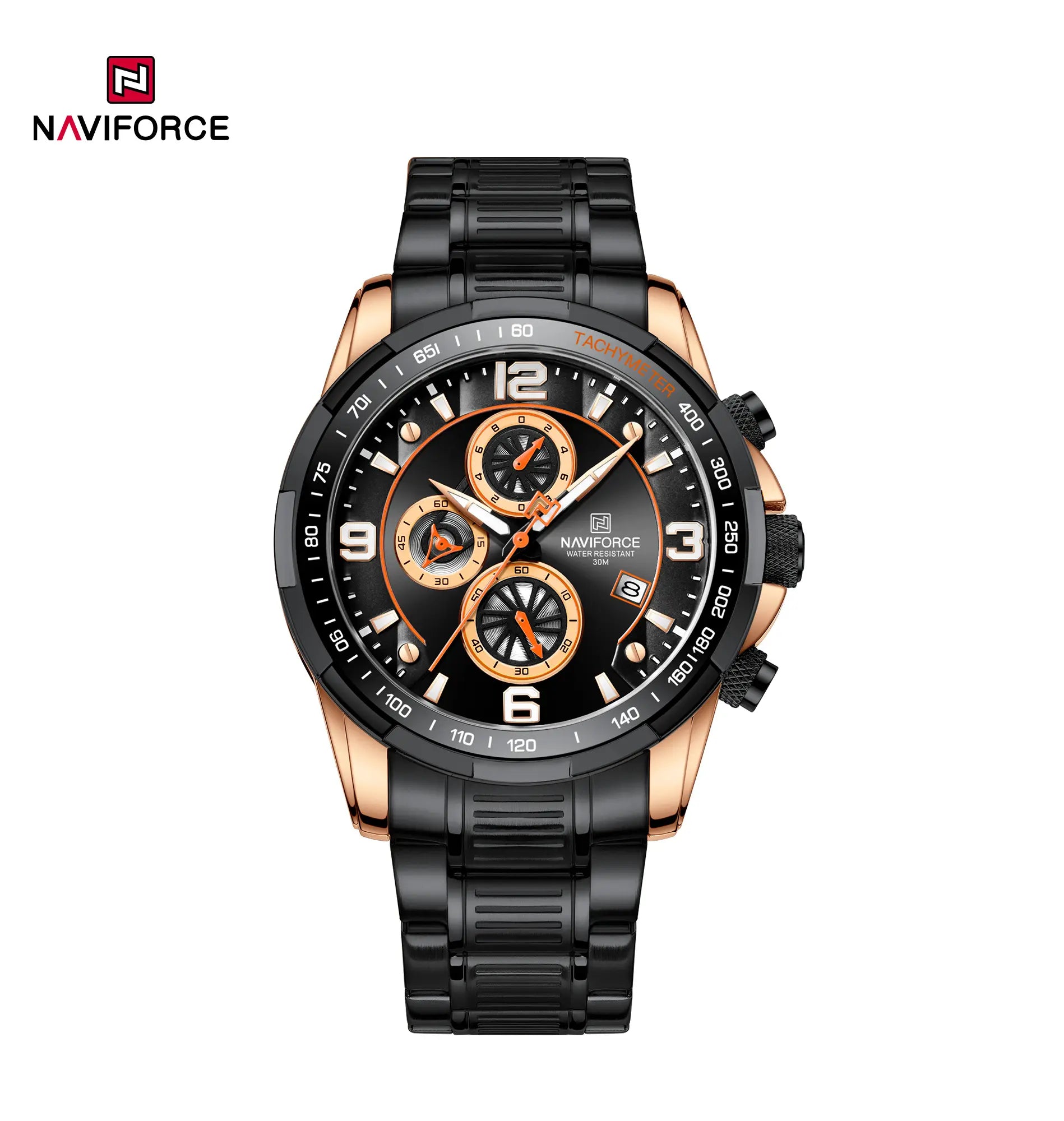 Naviforce NF8020S, a timepiece that seamlessly blends style and functionality. Its exciting and domineering timer, passionate bezel, and tough stainless steel strap create a winning combination. With an accurate quartz chronograph, luminous coatings for low-light visibility, and 3ATM waterproof capability, NF8020S is your companion for any adventure. Embrace the new era of mechanical aesthetics, where every movement marks a chapter in the thrilling journey of time and speed. Backed by a one-year warranty and worry-free after-sales service, NF8020S is more than a watch; it’s a statement of bold sophistication.