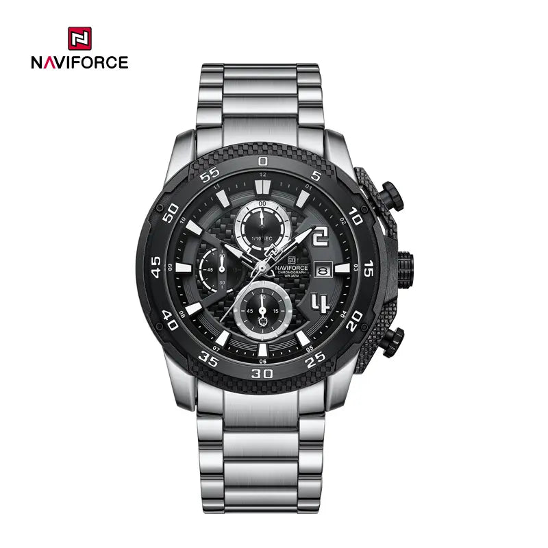 The Naviforce NF8047 men’s watch features a uniquely designed case with textured engraving that complements its woven dial, highlighted by bold numeral markers, making it an ideal choice for many modern men. Crafted with precision quartz movement, it boasts three sub-dials and a date display, seamlessly blending classic design with contemporary functionality. Luminescent hands and markers ensure easy readability even in low-light conditions. The durable alloy bezel adds lightweight durability and aesthetic appeal. A stainless steel band provides comfort and style, fitting snugly on the wrist. Additionally, the NF8047 is water-resistant to 30 meters, meeting daily waterproof needs without worry of moisture or rain. Whether for everyday wear or stylish occasions, the Naviforce NF8047 showcases unparalleled quality and charm. Whether your customers seek fashion accessories or high-performance timepieces, it represents a professional and diverse choice for your wholesale business. Contact us to learn more about this striking timepiece and offer your customers the finest selection!