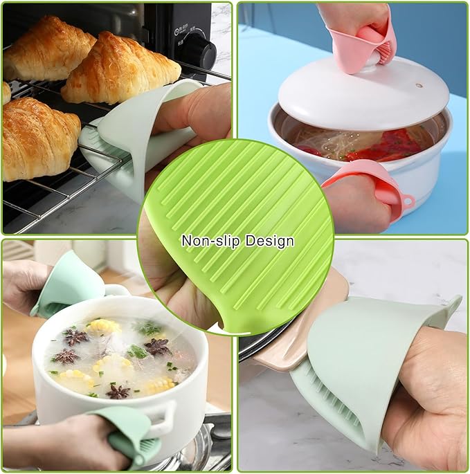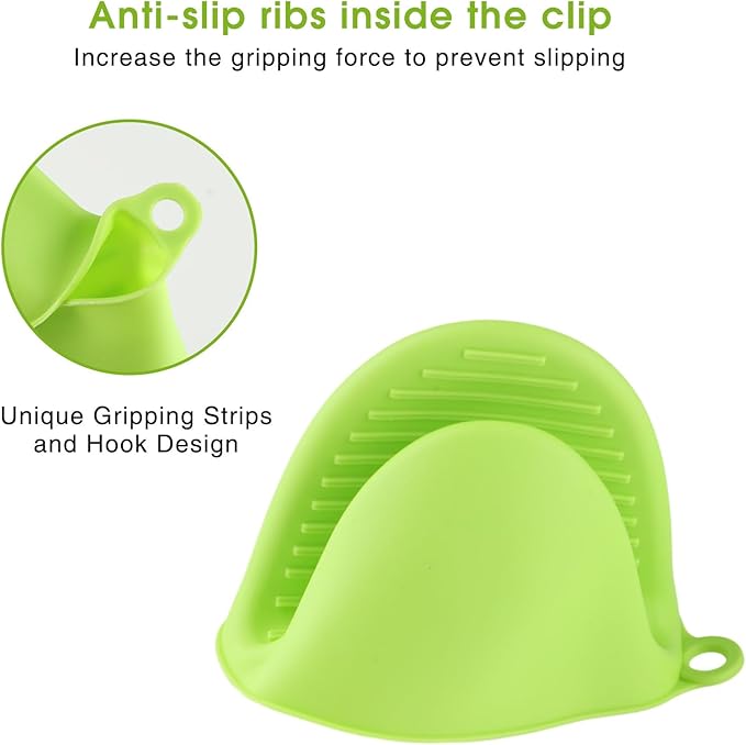 Oven Gloves Cooking Pinch Grips Silicone | Mini Oven Mitts Description: 100% brand new and high quality More Healthier to Use: Due to the food-grade silicone material, it is non-toxic and antibacterial for you to use securely. More Comfortable and Durable: The oven mitts can be effectively heat resistant for serving, baking, cooking, or handling hot plates and pots. The high-quality design ensures durability when using them. Easier to be Stored: The pinch oven mitts are small and light and can be stored easily and hung on wherever you like in your kitchen with built-in holes. More convenient to clean: The mitts are hydrophobic so that it is easy to clean and dishwasher safe. Specifications: Material: Silicone Product Size: 11*8.5*cm(4.33*3.35in) Weight: 45 plus-minus 3g/piece Heat resistant: -40-260 Celsius Color: AS